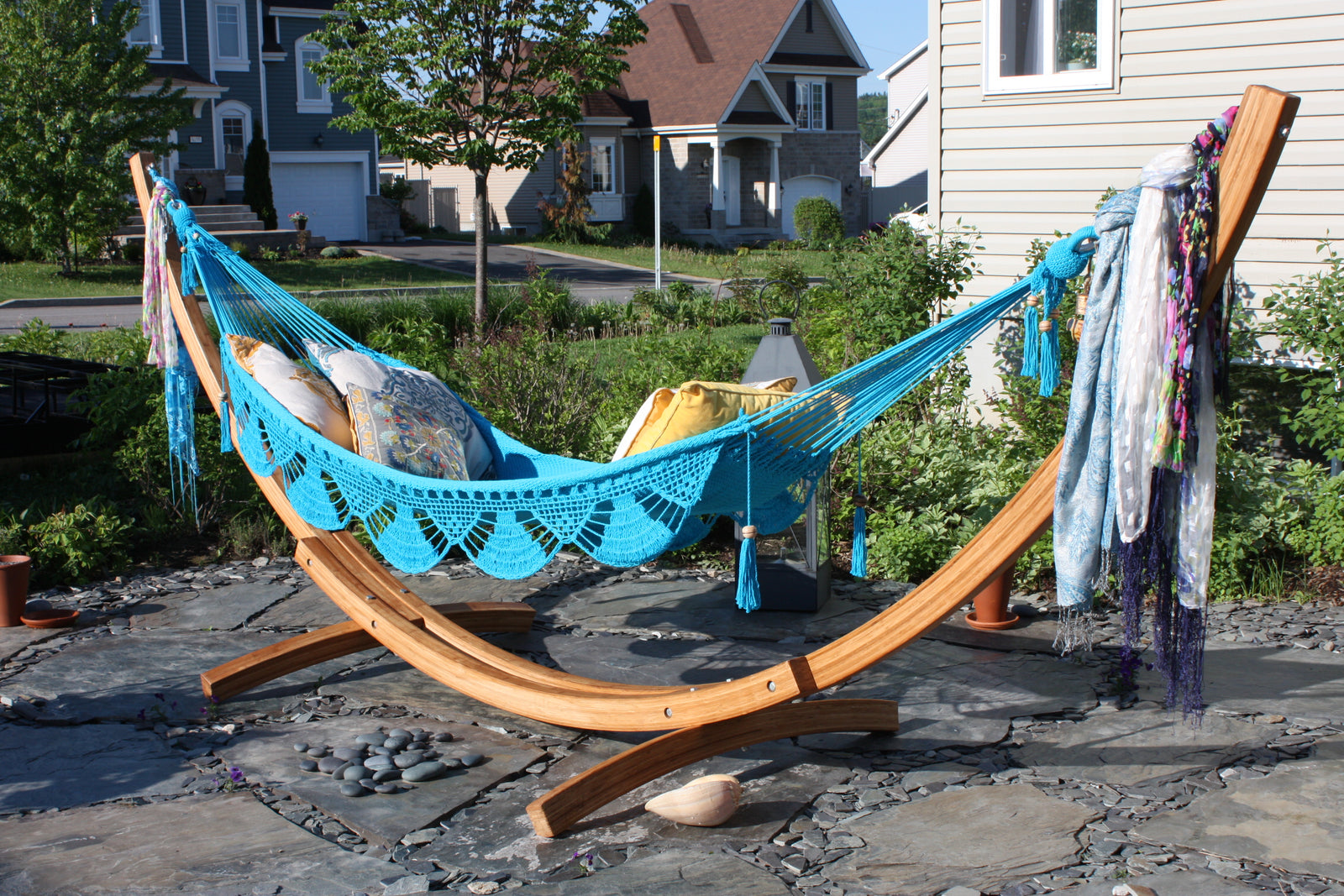 Les chaises hamac sont polyvalentes tout en prenant très peu de place. Elles vous permettent de facilement relaxer autant à l’extérieur qu’à intérieur. On peut également y ajouter des accessoires pour en optimiser l’expérience.