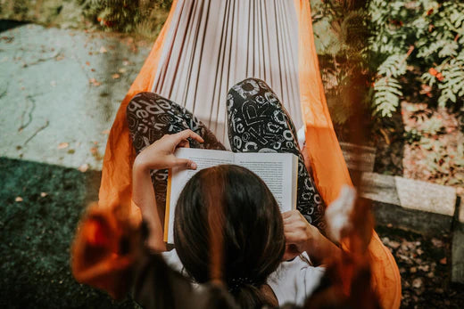 Les yeux vers le ciel. La lumière du soleil à travers les feuilles. Le doux mouvement de va-et-vient d'un hamac.
